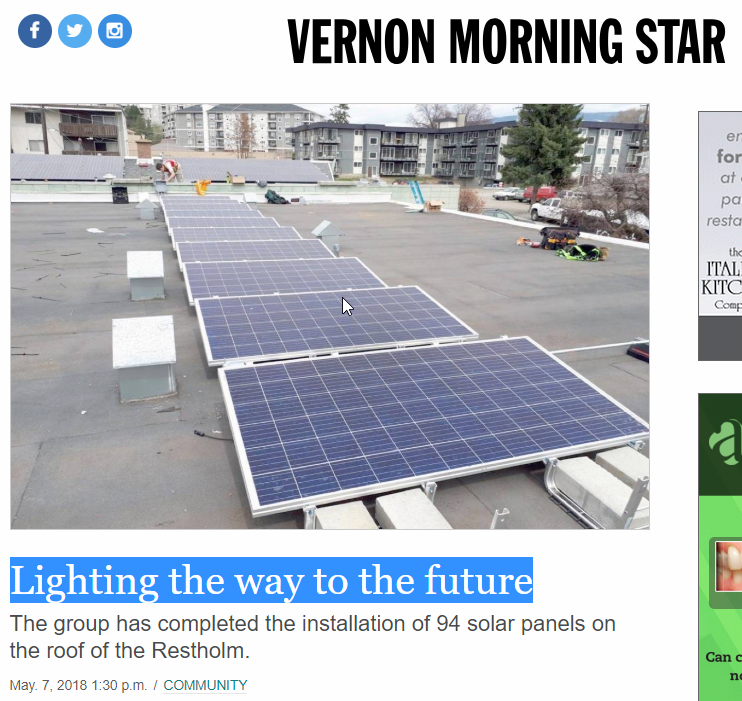 Nice article about a recent Roost Solar install at the Vernon Restholm. Full story here at the morningstar: LINK TO ORIGINAL ARTICLE